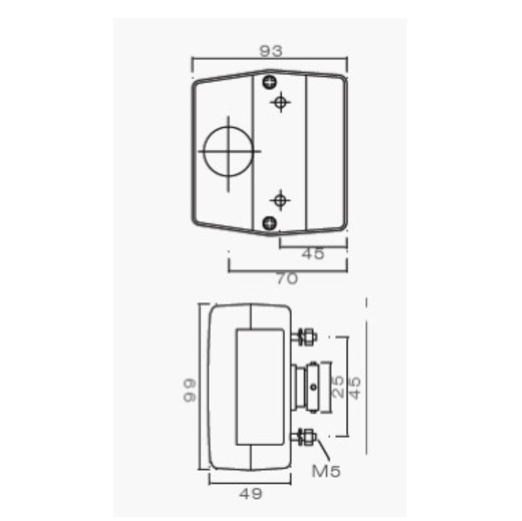 med bajonett 5-pol, 99x93mm, c/c 45mm
