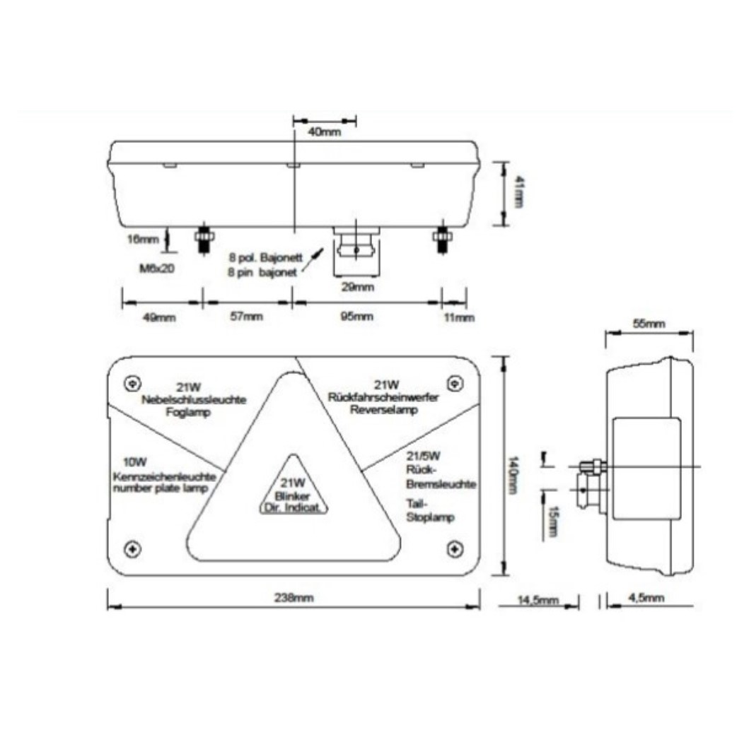 Baklampa Aspöck Multipoint V höger 238x140mm