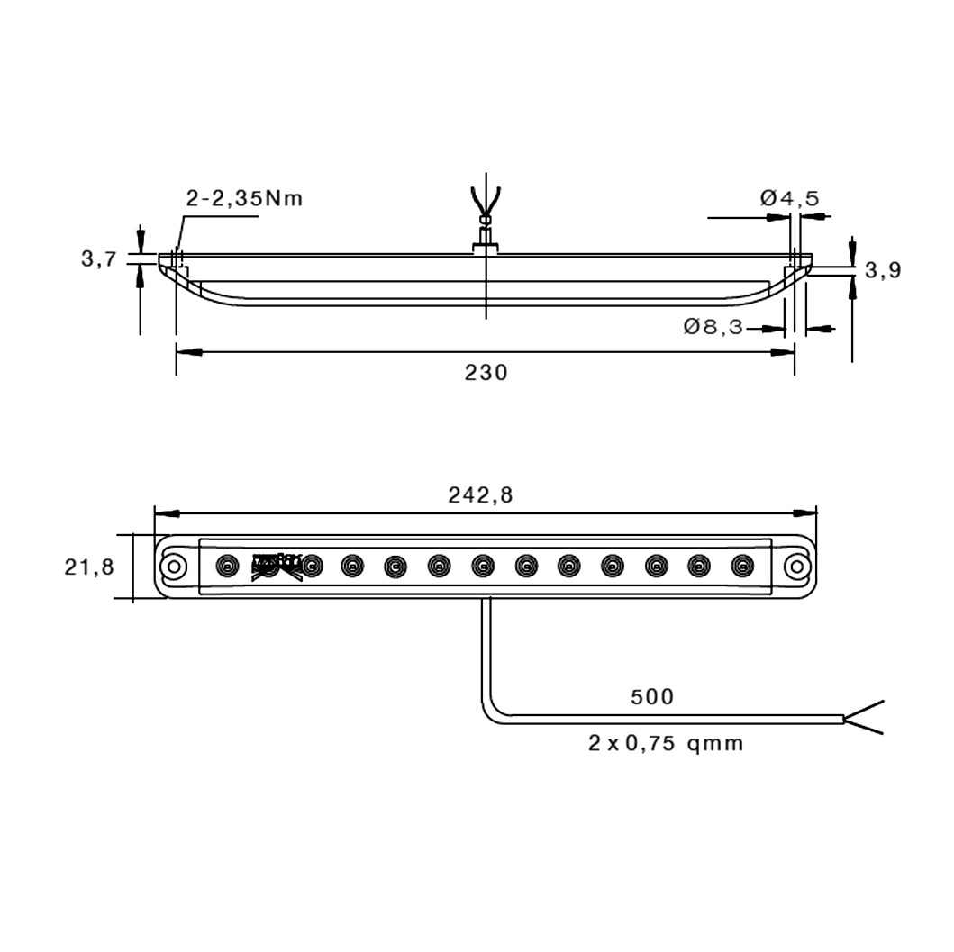 LED Bromslampa Aspöck Linepoint I, 12/24V, 50cm kabel 2-ledad