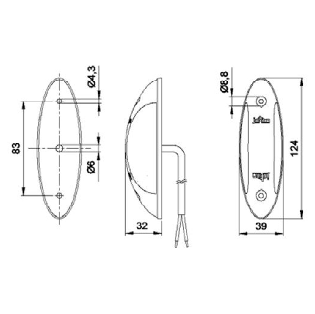 LED breddmarkering Jokon röd/vit 124x39mm med svart botten.