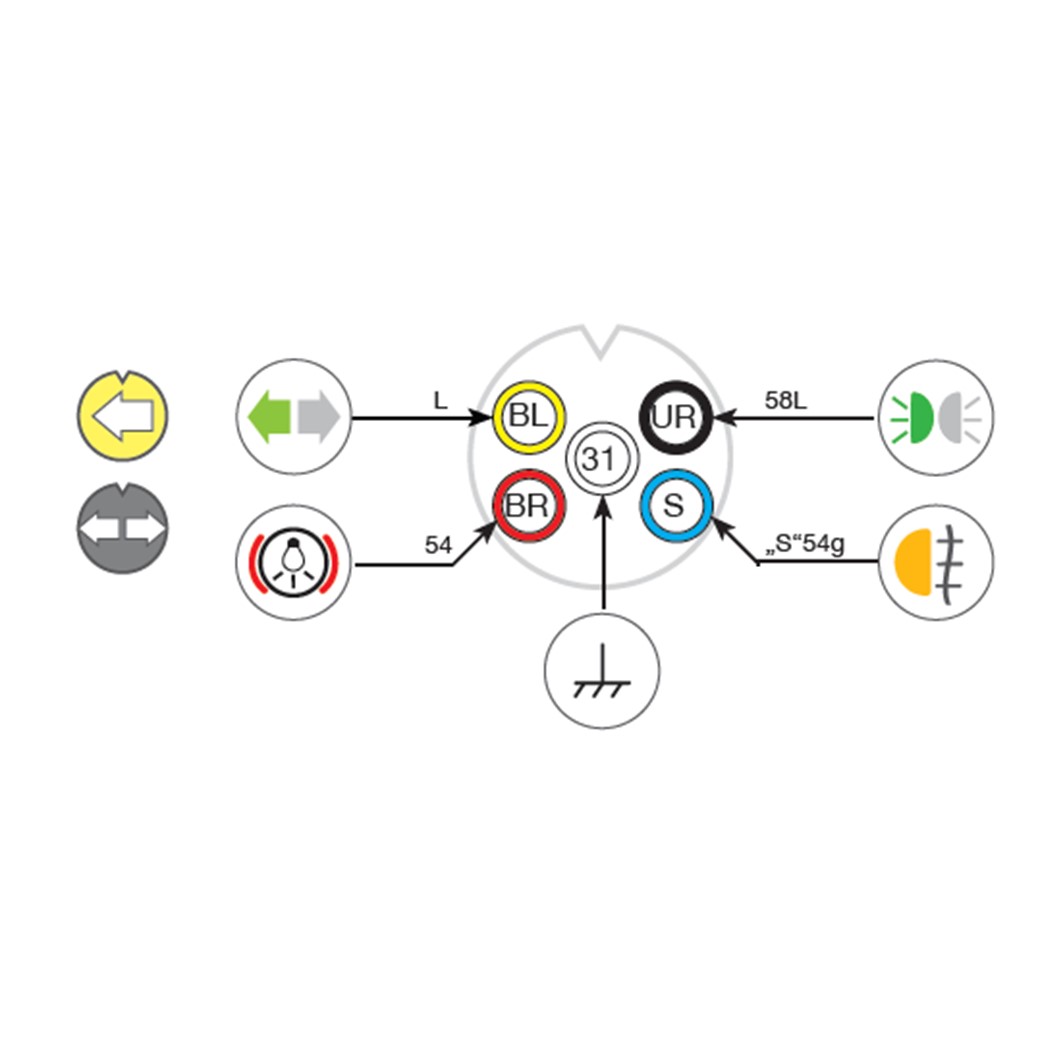Startsida / Butik / El / Belysning / Kablage / Bajonettanslutning 5-pol Aspöck vänster gul 1m