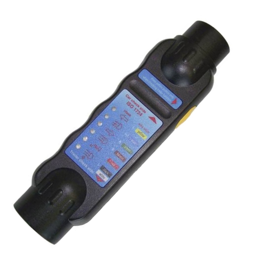 Tryck på den gula knappen och testaren skickar kontrollström för att se om kretsarna är hela.