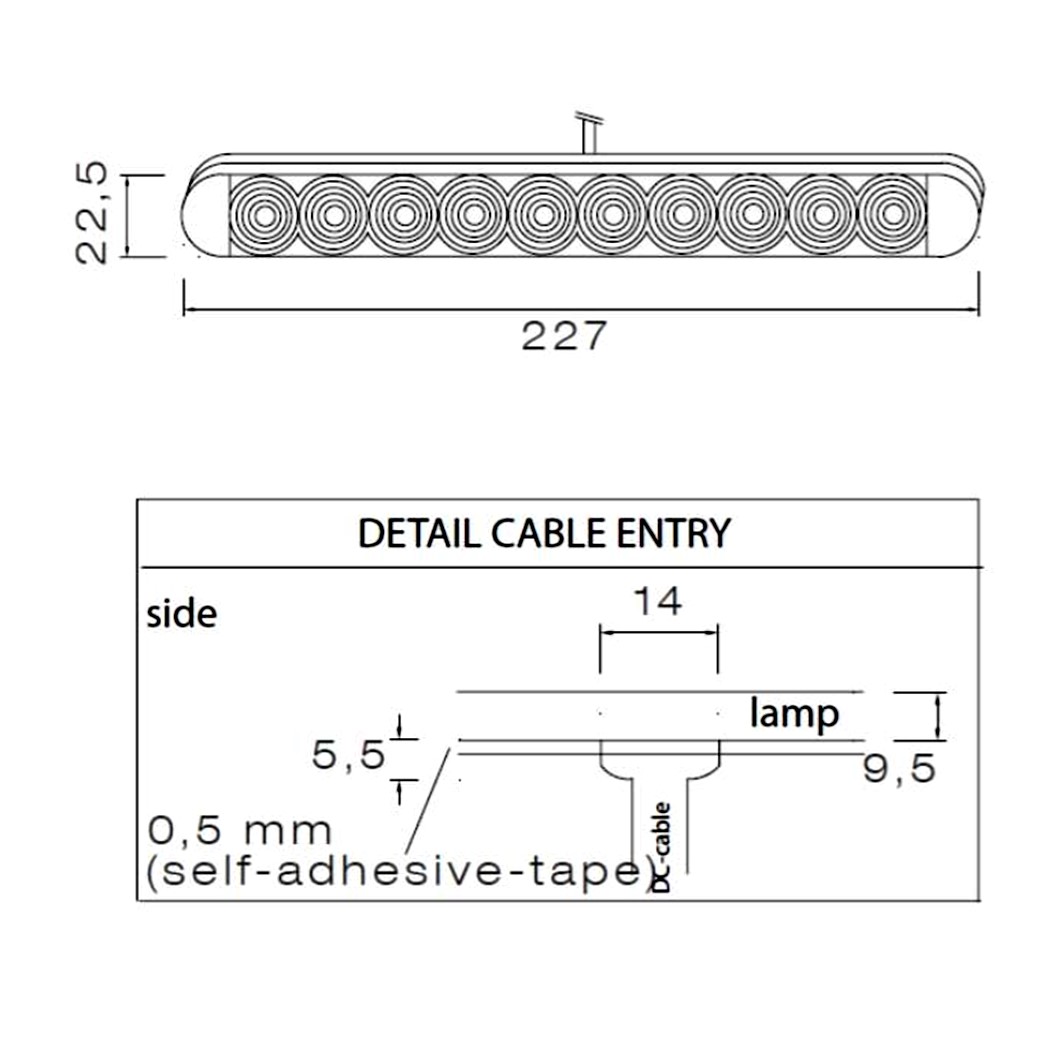 LED Bromslampa Aspöck 3, 12V, 3,8m DC-kabel