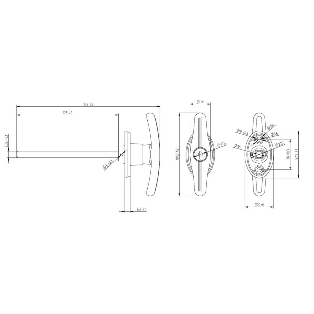 Dörrlås T-handtag med två nycklar, c/c 38mm
