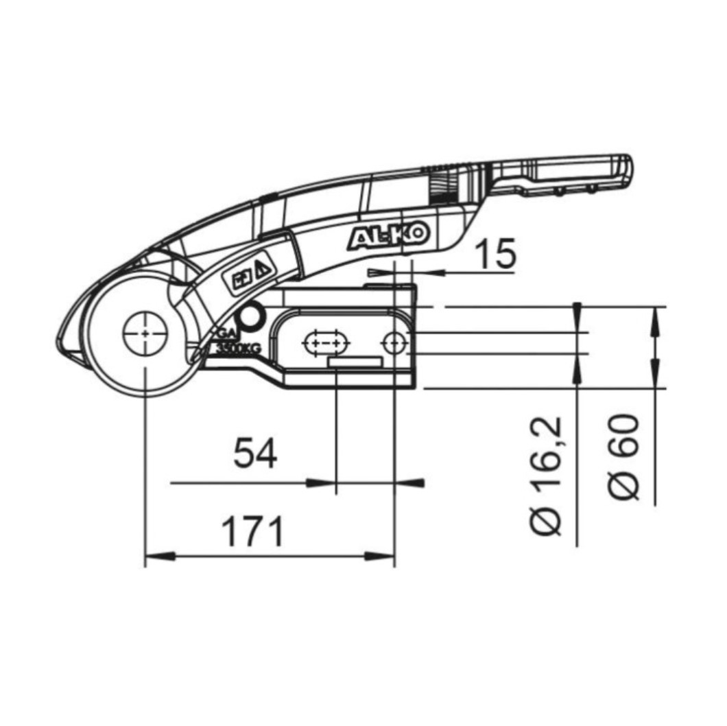 Säkerhetskoppling/stabilisator AL-KO AKS 3504, Ø60mm, M16 horisontal hålbild