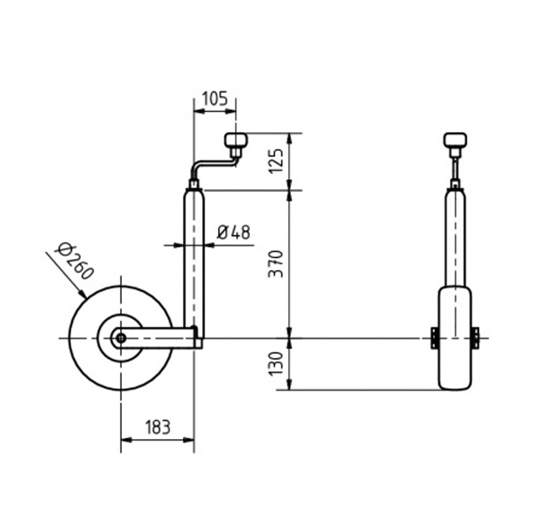 Stödhjul 48mm, luftgummihjul 260×85 (3.00-4) med stålfälg