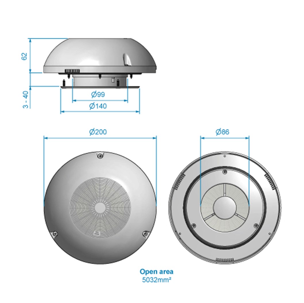 Startsida / Butik / Tillbehör / Chassi / Ventilation / Ventilator rostfri 200mm komplett Roca
